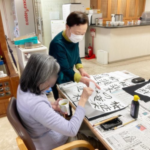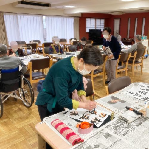 本日は書道レクを開催📝