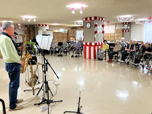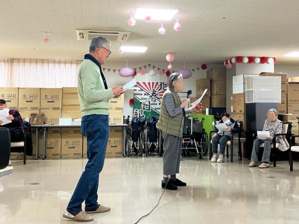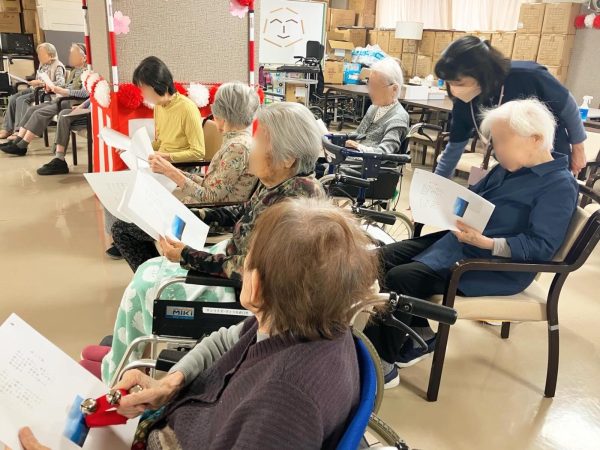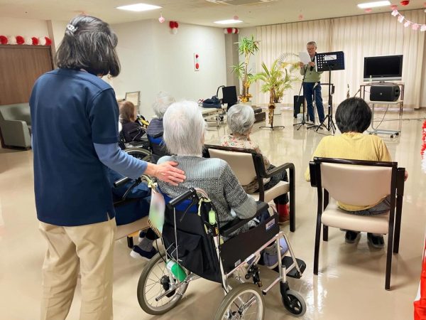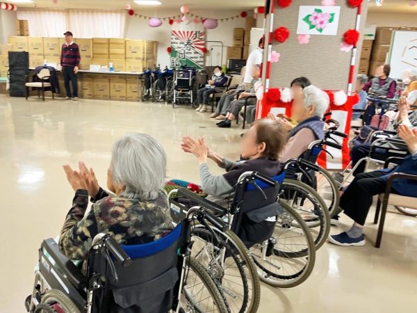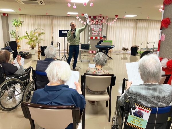 ご入居者様にもマイクを持って前で歌っていただきました🌱