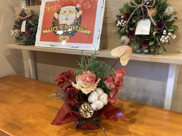 まずはクリスマスバージョンのフラワーアレンジメント🌸