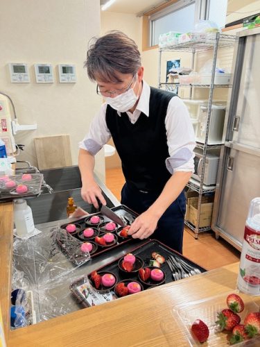 和菓子🍡にイチゴ🍓に、施設長も腕を振るいます💪
