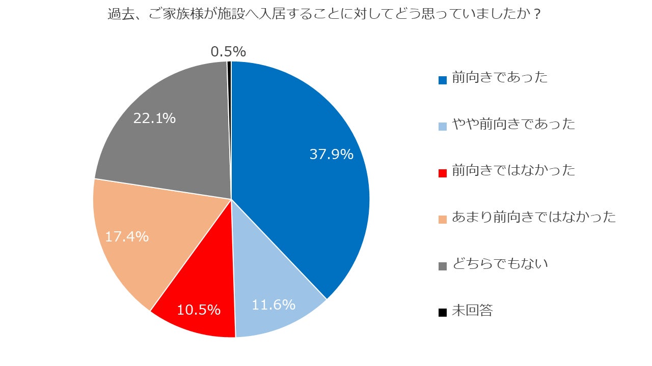 • ご家族様の施設入居に前向きであった方は約半数!一方で、3割弱が前向きではなかったと回答